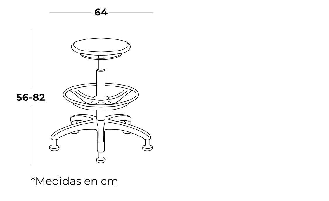 - Aro descansapiés de acero cromado, ajustable en altura por perilla.