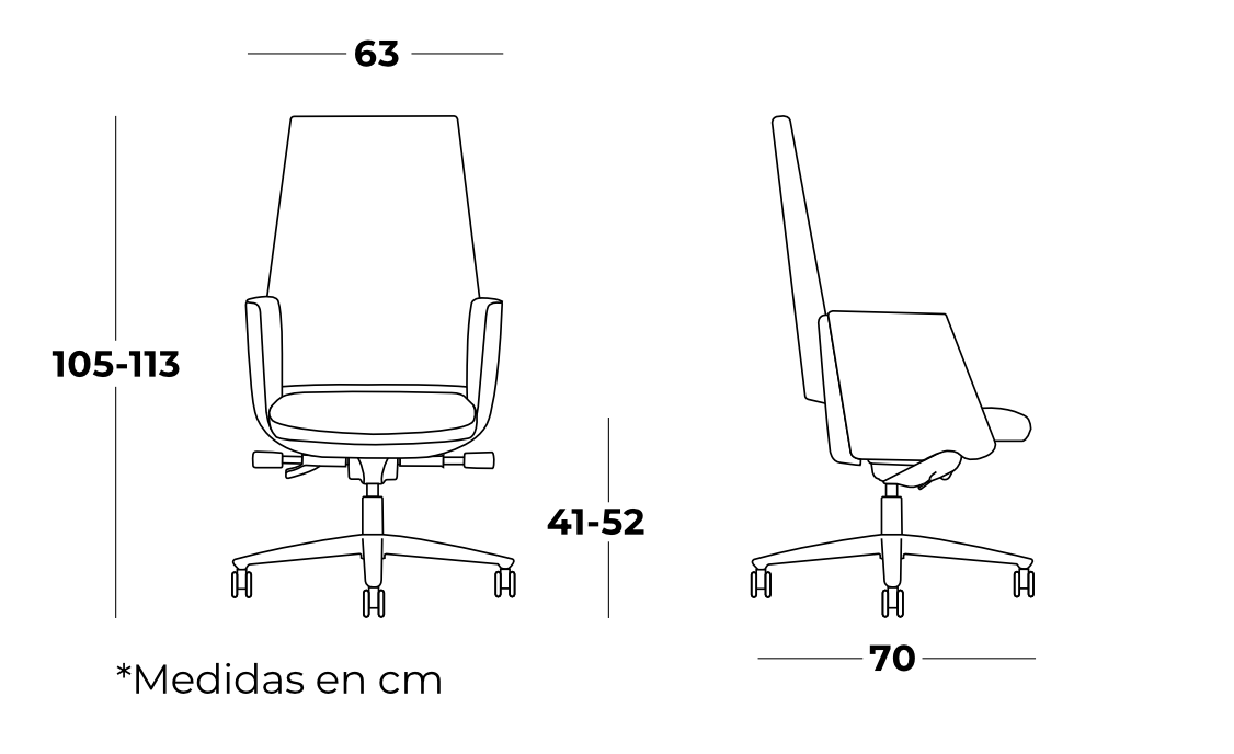 - Respaldo y asiento de poliuretano suave inyectado de 53kg/m3.
