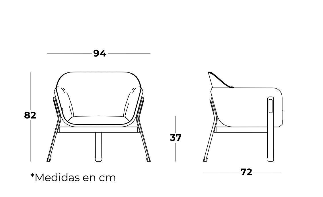 Estructura de tres patas en aluminio, con recubrimiento de pintura en polvo de color negro.