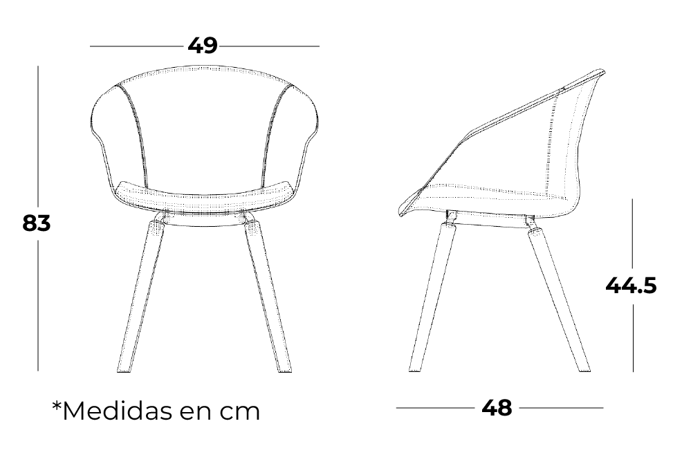 Asiento y respaldo tapizado en color: