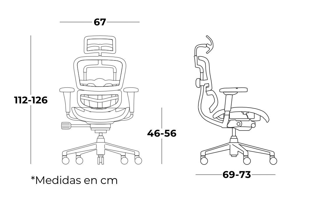 • Respaldo con diseño ergonómico y soporte lumbar flotante con ajuste de tensión, ajuste de altura del respaldo gradual.
