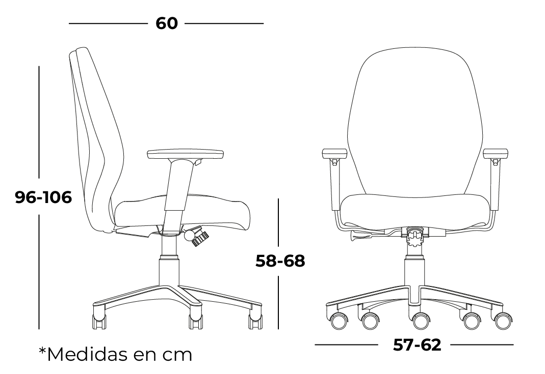 - Ajuste de profundidad de respaldo y elevación neumática.