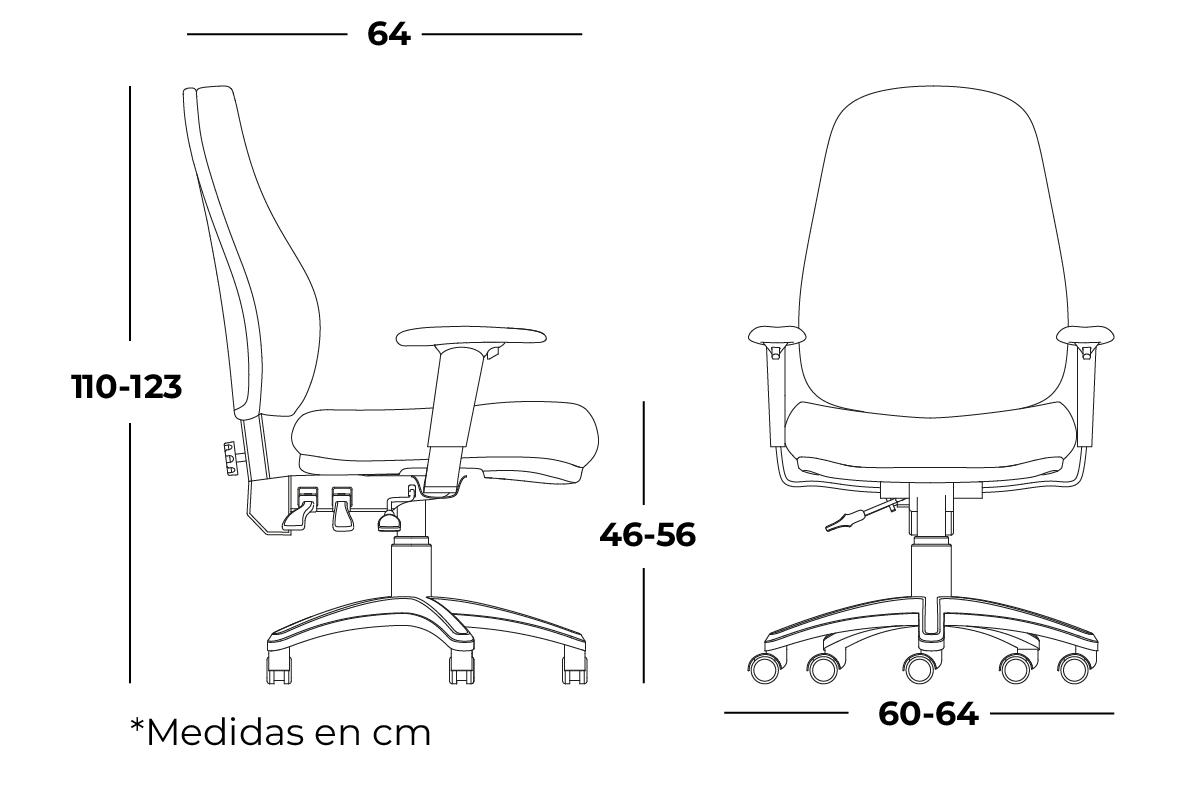 - Descansabrazos de poliuretano con ajuste de altura.