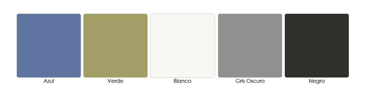 - Estructura de acero tubular redondo de 4 patas, calibre 16 terminada en pintura electrostática terminado en color gris o negro.