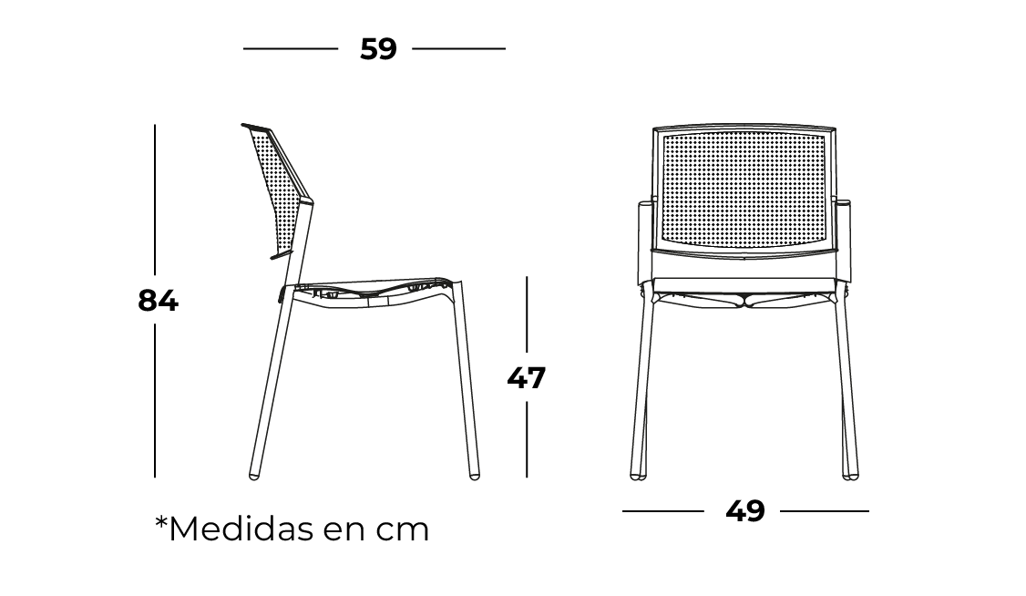Respaldo fabricado en inyección de polipropileno de alta resistenciareticulado para permitir circulación de aire, mayor confort y diseño ergonómico.