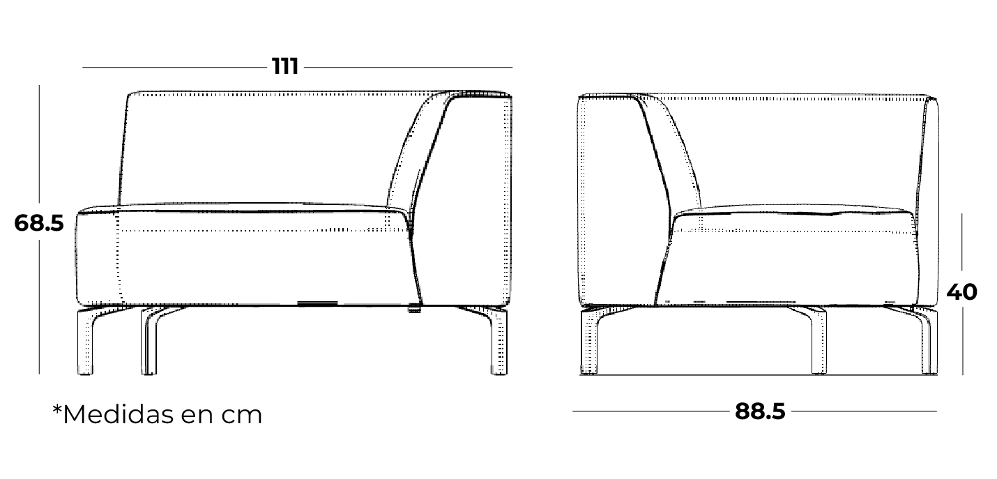 Sillón modular, asiento y respaldo tapizado en tela Era o Manhattan.